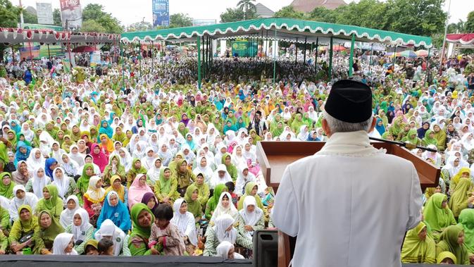 "Gus Dur itu santri apa bukan? Santri, karena itu harus nanti ke depan, ada lagi santri yang jadi presiden. Siapa tahu yang jadi presiden itu santrinya dari Kendal," kata Ma'ruf Amin seraya diamini para jemaah di Alun-Alun Kendal, Jawa Tengah, Senin 4 Februari 2019.