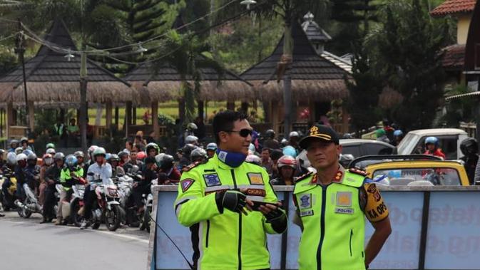 Liputan6.com, Garut - Setelah sukses mengamankan jalannya arus mudik lebaran 2019, Polres Garut, Jawa Barat, kembali siaga menghadapi limpahan arus balik lebaran. Seluruh anggota yang diterjunka kembali mengamankan jalannya rute yang akan dilalui pemudik.