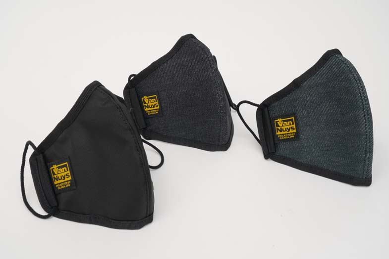 さてレビューに戻ります。ストレートなネーミングの「マスクカバー&マスクにもなります」は立体縫製のマスクカバーです。素材はナイロン・ブラック、デニム、ビンテージブルーデニムの3種類が用意されています。