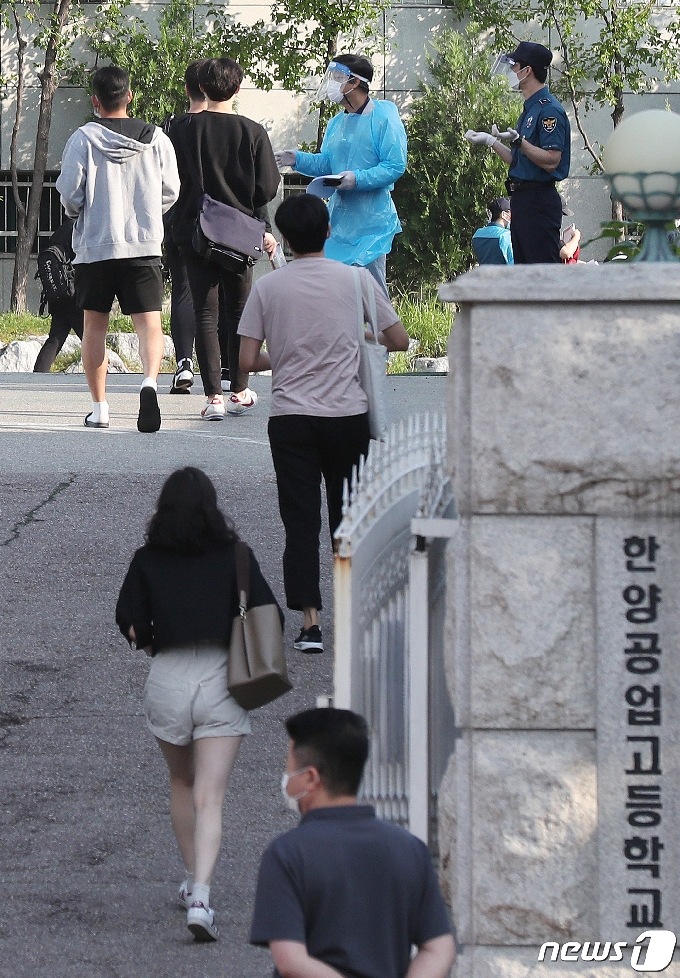 경찰은 신종 코로나바이러스 감염증(코로나19) 확산 방지를 위해 시험 전과 후 고사장에 대한 방역을 실시하고 응시자 사이 1.5m 이상 거리 두기 등을 실시한다. 2020.9.19/뉴스1