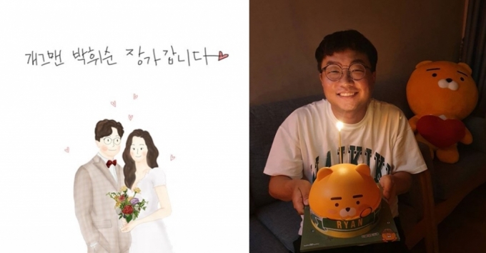 박휘순 여자친구는 "코로나로 힘든 시기에 이런 소식을 알리는 것이 조심스럽다. 기쁜 마음으로 축하해주시면 감사하겠다"면서 "혹시 계정 도용당한 건 아닌가 싶으실 수도 있지만, 절대 아니다"라고 덧붙였다.