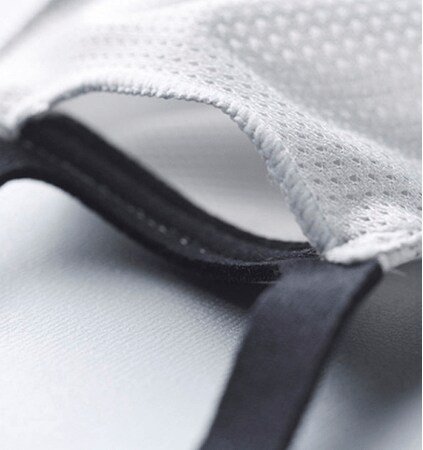 その技術を生かした顔の曲面にしっかりフィットする立体パターン(立体裁断)と伸縮性のある素材の採用で、着けているのを感じさせない抜群のフィット感と快適性。