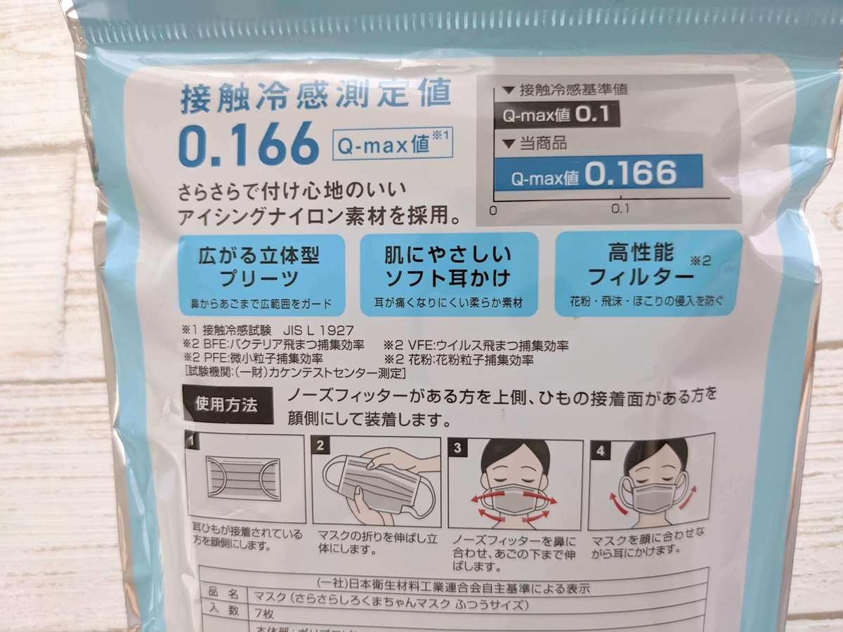ですが、普通の不織布マスクを使ったあとに、しろくまちゃんマスクを使うと違いがよくわかります。 アイシングナイロン素材ならではのひんやり感、そしてサラサラの肌ざわりは試してみる価値ありです!