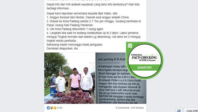 [Cek Fakta] Anggur Berfomalin Dijual di Pinggir Jalan Padang dan Tegal?
