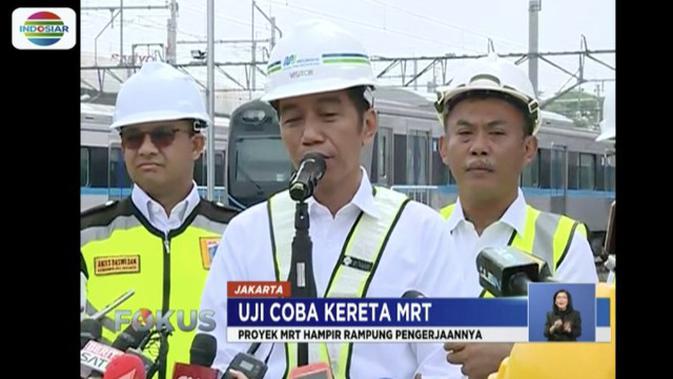 Presiden Jokowi baru pertama kali melakukan uji coba MRT dengan jarak lebih dari 16 kilometer sejak proyek dimulai 2013 lalu. Rencananya akan secara resmi digunakan masyarakat Maret 2019.