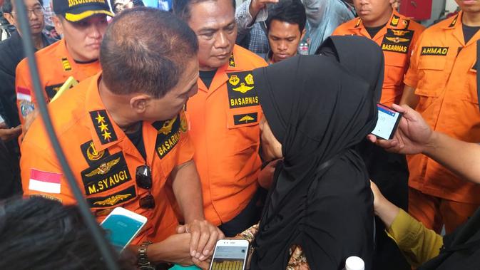 Liputan6.com, Jakarta - Kepala Basarnas Marsekal Madya TNI M Syaugi hadir di tengah-tengah keluarga korban pesawat Lion Air PK-LQP yang jatuh di perairan Tanjung Karawang, Jawa Barat. Rencananya bersama rombongan akan melakuan doa bersama di atas kapal laut milik TNI AL.