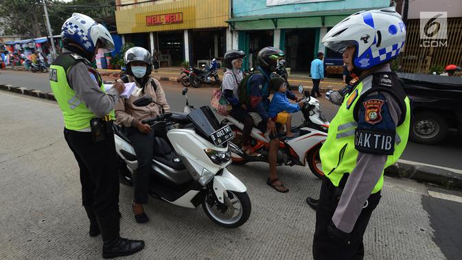 Anggota Satlantas Jakarta Timur merazia sepeda motor yang masuk jalur Transjakarta di kawasan Jatinegara, Jakarta, Kamis (7/2). Sterilisasi jalur Transjakarta ini dilakukan lantaran banyaknya pengendara yang nekat menerobos. (Merdeka.com/Imam Buhori)