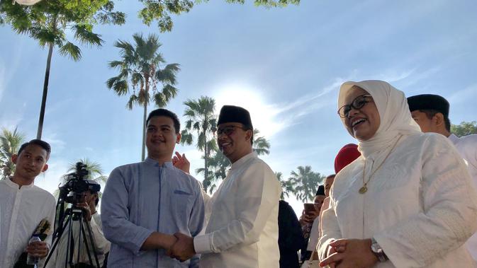 Liputan6.com, Jakarta - Gubernur DKI Jakarta, Anies Baswedan melaksanakan salat Idul Fitri di halaman Balai Kota Jakarta bersama keluarganya. Anies tiba di lokasi pukul 06.40 WIB.