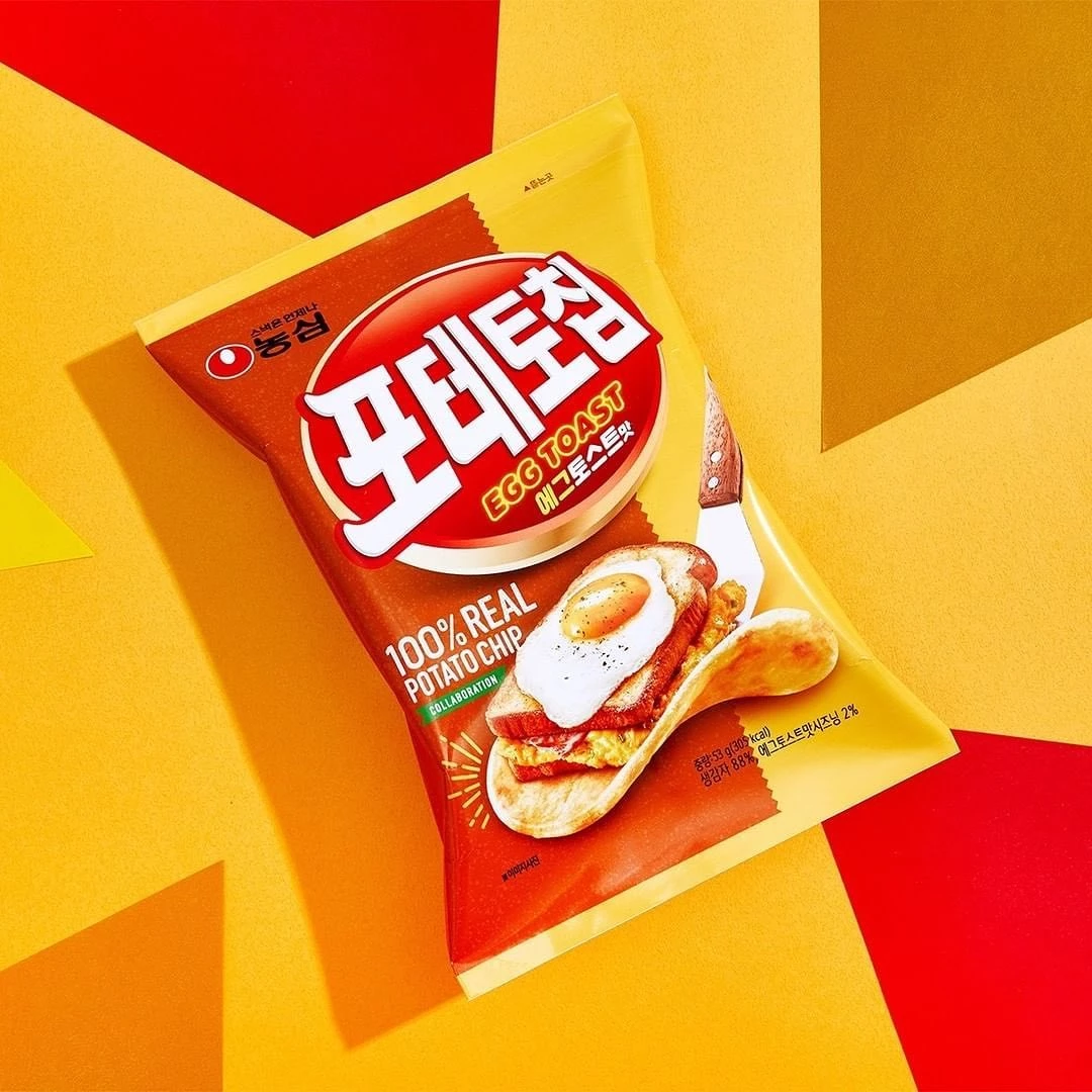 포테토칩은 참치마요, 콘치즈, 김치 사발면 맛에 이어 요즘 사람들이 가장 좋아하는 대표적 간식 에그 토스트 맛까지 출시하여 많은 사랑을 받고 있다.
