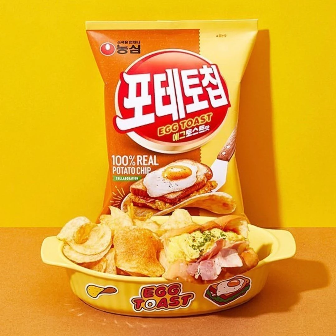 농심 '포테토칩'이 많은 사람이 간식으로 좋아하는 에그 토스트와 만나 새로운 맛을 출시했다.
