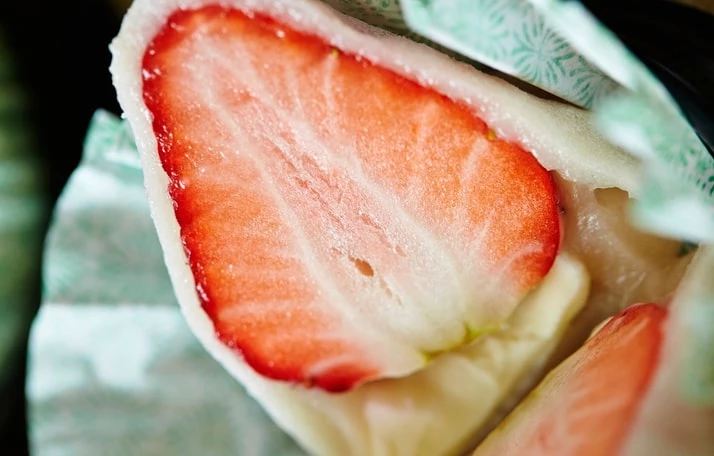 딸기모찌는 앞선 두 가지 먹거리와는 달리 아직까지 찾는 사람들이 있는 음식이다. 쫀득한 찹살떡 안에 딸기가 들어가 있다.