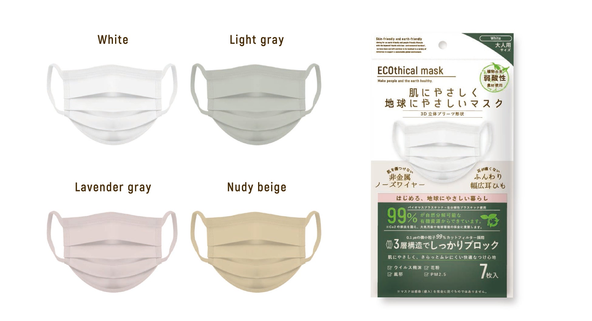 - 99%植物由来で自然分解可能なサスティナブルマスク「ECOthical Mask(エコシカルマスク)」