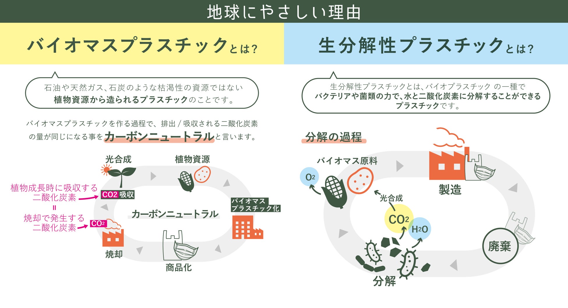通じて、「二酸化炭素排出量の削減」や「海洋プラスチック問題の改善」など、地球環境に関する取り組む活動を積極的に行います。