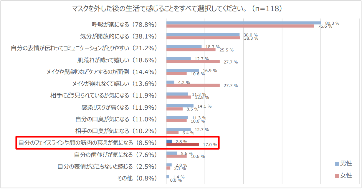 (1)過半数が「マスクを外した顔に自信なし」。約9割が「ダイエットしたい」。